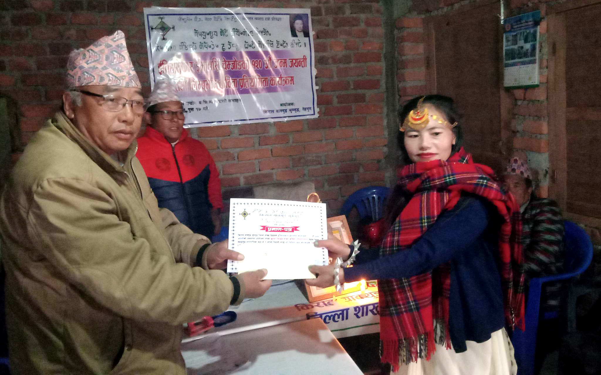 प्रतियोगितामा प्रथम हुनेले नगद रु ५ हजारको साथमा प्रमाण पत्र प्राप्त गरेको छ भने दोस्रो हुनेले नगद रु ३ हजारको साथमा प्रमाण पत्र, र तेस्रो हुनेले २ हजारको साथमा प्रमाण पत्र प्राप्त गरेको किरात याक्थुङ चुम्लुङ तेह्रथुमका अध्यक्ष सेसेहाङ हुक्पा चोङबाङले बतायनु भयो ।