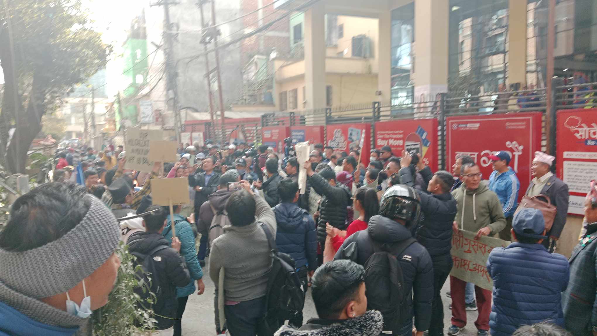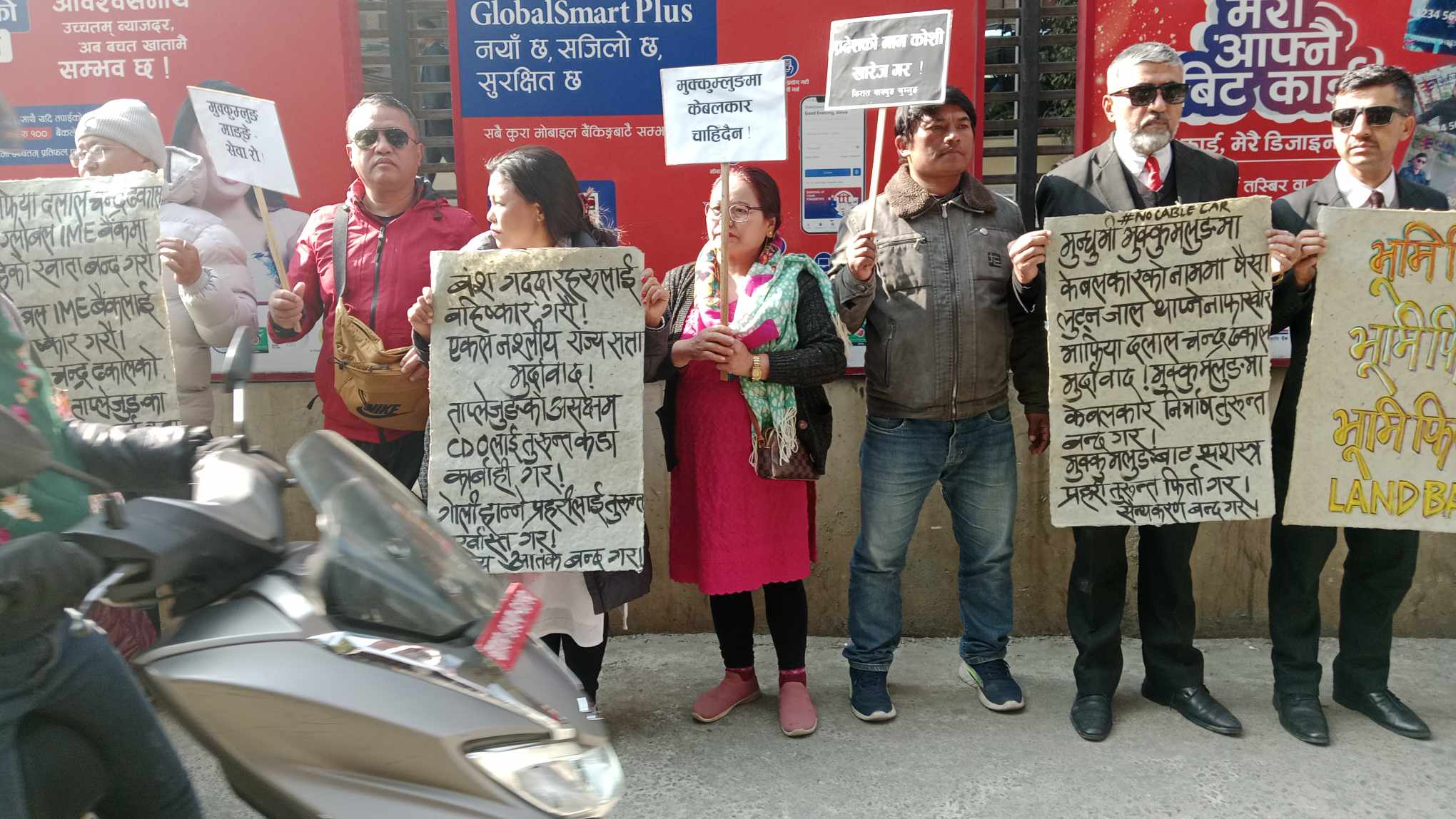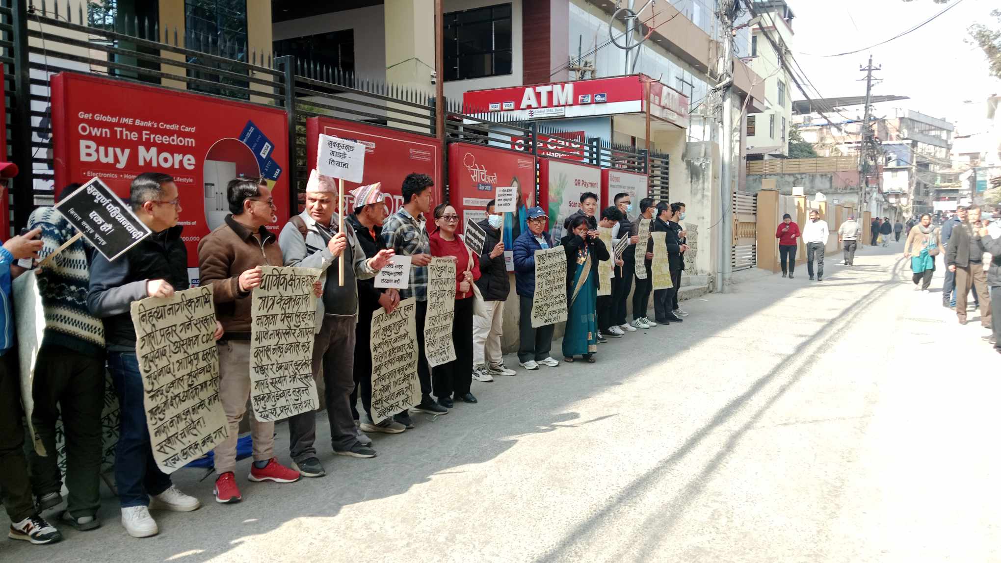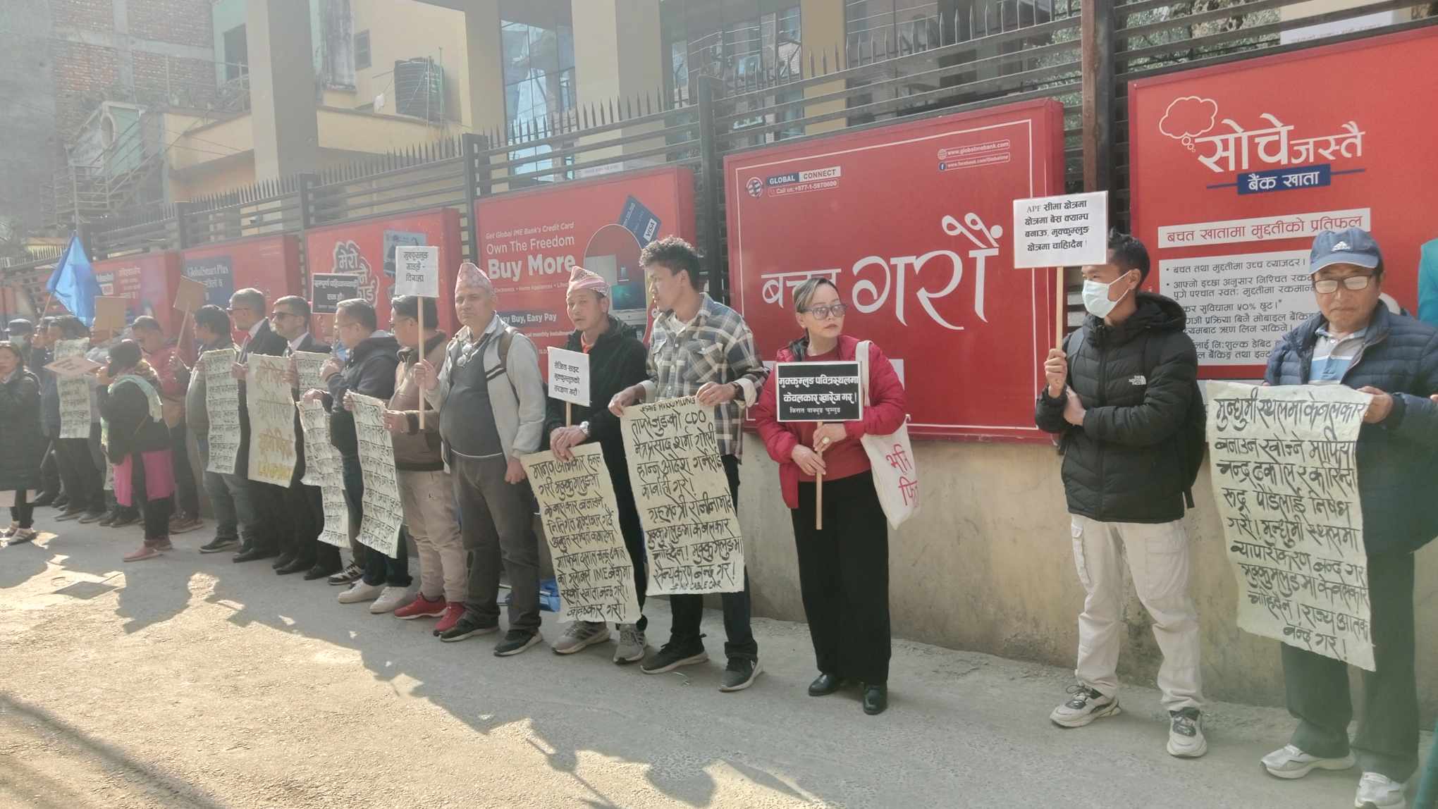 विभिन्न नाराहरु लेखिएको प्लेकार्डसहित प्रदर्शनमा उत्रिएकाहरूले ग्लोबल आईएमईको केन्द्रीय कार्यालयअगाडि धर्ना दिएका हुन् ।