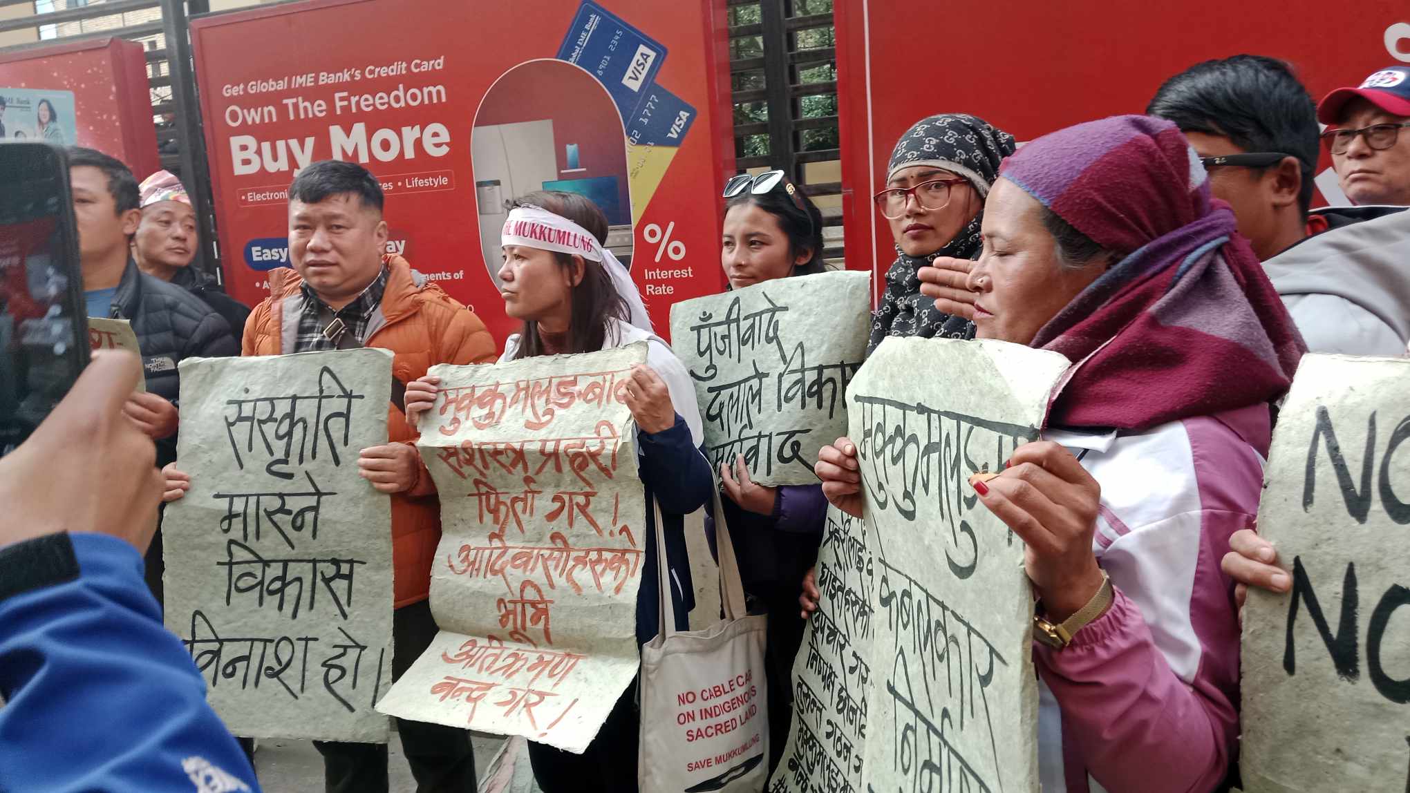ललितपुर, १४ माघ । मुक्कुमलुङ संयुक्त संघर्ष समिति, विभिन्न जातीय संगठन, राजनैतिक दल लगायत मोर्चाले आई एम ई बैंकको केन्द्रीय कार्यालय कमलादी र प्रदेश नं. १ को सबै शाखाहरुमा सोमबार एकैपटक धर्ना कार्यक्रम गरेको छ । ताप्लेजुङस्थित प्रसिद्ध मुन्धुमी धार्मिक आस्थाको धरोहर मुक्कुमलुङ पाथीभरा क्षेत्रमा बन्ने केवलकार निर्माणकार्य अघि बढाएसँगै पुनः संघर्षका कार्यक्रमहरु शुरु भएको हो ।