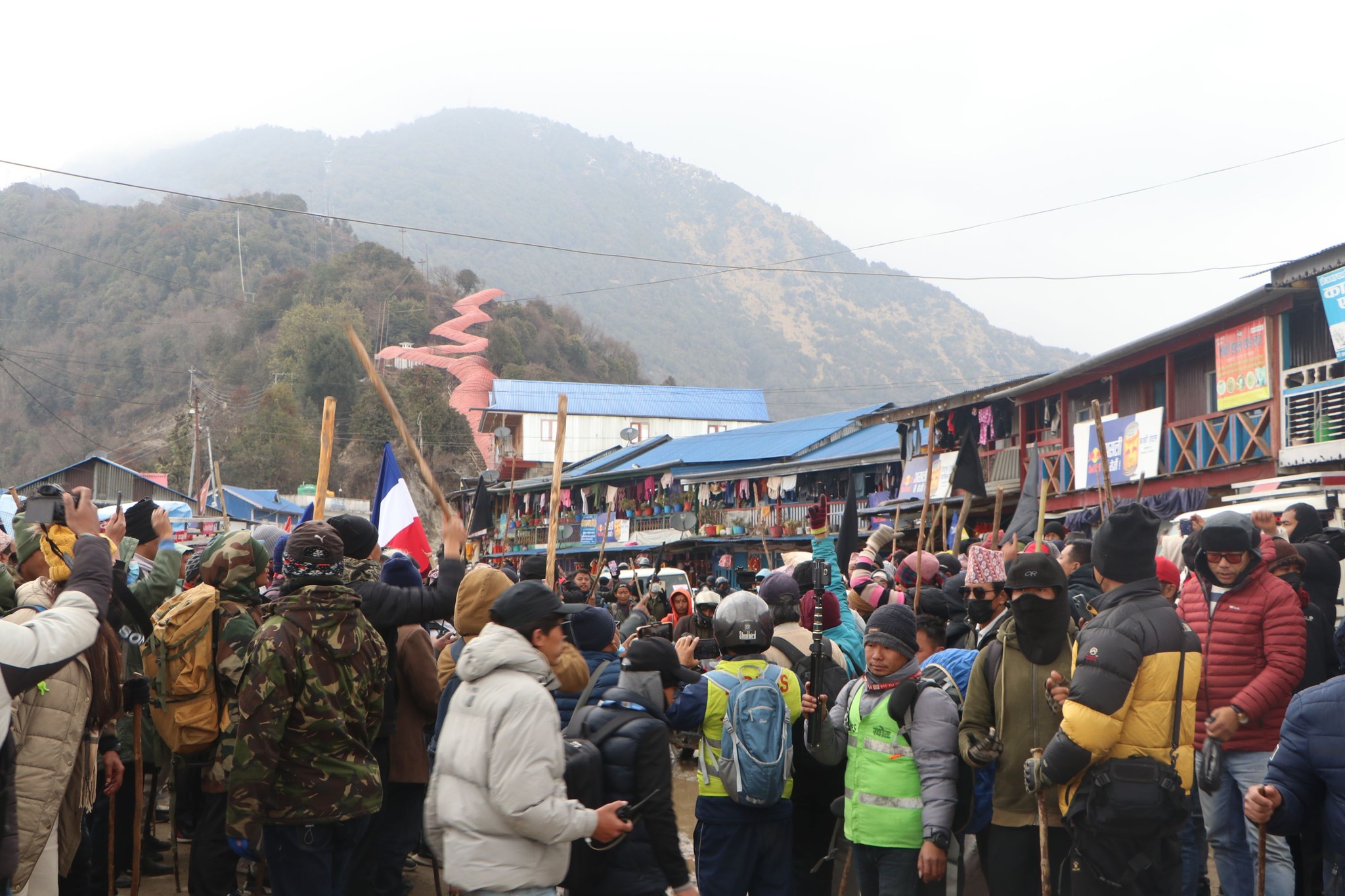 मुक्कुमलुङको तीन दिने पदयात्रा कार्यक्रम सम्पन्न पश्चात फर्किएपछि ताप्लेजुङको फुङलिङ बाजारमा र्यालीमा रहेका ‘नो केवलकार समूह’का सहभागीले वीरेन्द्रचोकमा राँके जुलुस तथा नाराबासी गरेका थिए ।
