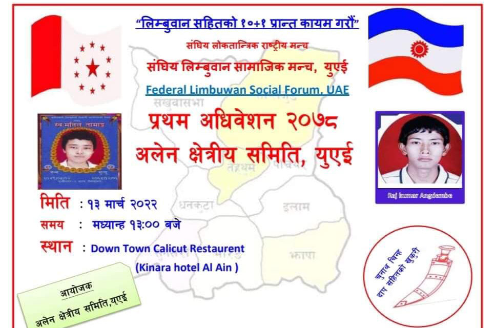 लिम्बुवानखबर प्रवास संवाददाता । संघीय लोकतान्त्रिक राष्ट्रिय मञ्च अन्तर्गत संघीय लिम्बुवान प्रान्तीय मञ्च, नेपालको प्रवास संगठन संघीय लिम्बुवान सामाजिक मञ्च, प्रवास समिति दुवाईले अलेन क्षेत्रको प्रथम अधिवेशन गरेको छ ।