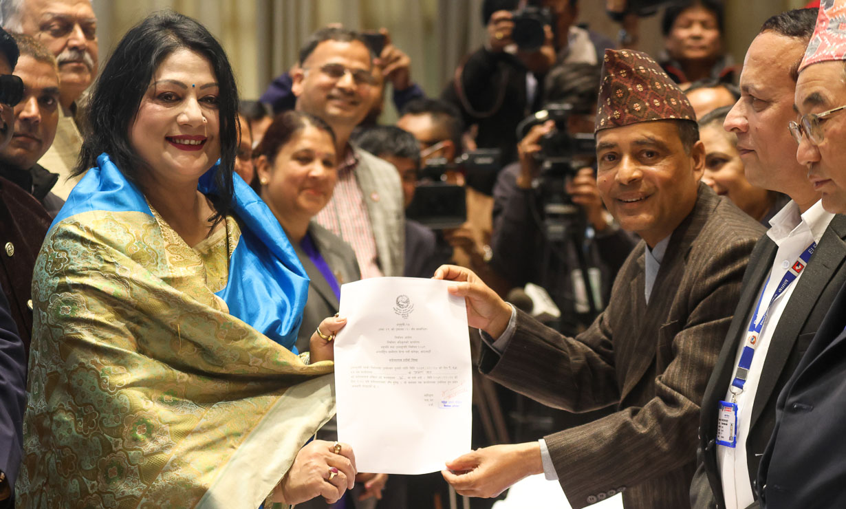 काठमाडौं, २७ फागुन । उपराष्ट्रपतिमा सत्तारुढ दलहरुकै गठबन्धनबाट ३ जना र एमालेको एक गरी ४ जनाको उम्मेदवारी दर्ता भएको छ ।