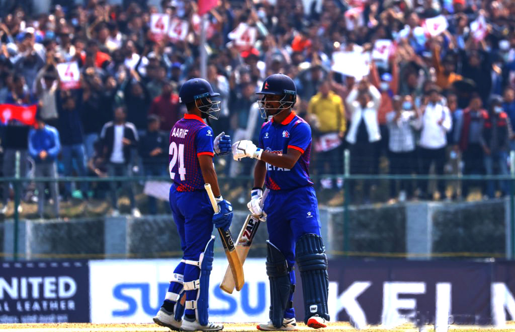 काठमाडौं, २८ फागुन । नेपालले आइसिसी विश्वकप लिग–२ मा उत्कृष्ट प्रदर्शन गर्दै आफ्नो ओडिआई क्रिकेटमा नयाँ इतिहास रचेको छ । आज टियू क्रिकेट रंगशालामा युनाइटेड अरव इमिरेट्स (युएई) लाई १ सय ७७ रनको फराकिलो अन्तरले हराउँदै नयाँ कीर्तिमान बनाएको हो ।