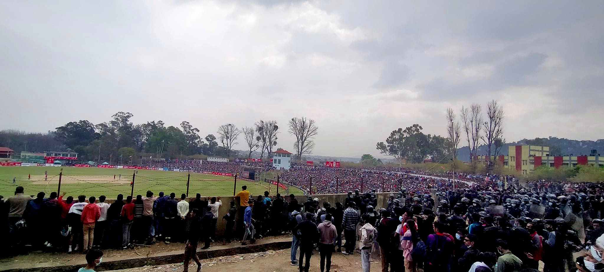 ओपनर आसिफ शेख तेस्रो बलमै विकेटकिपर अश्वन्त वल्थापाबाट शून्यमा स्टम्पिङ आउट भए । कुशल मल्ल जुनैद सिद्दिकको बलमा आर्यन लाक्राबाट ५ रनमा क्याच आउट भए । चोभार एण्ड तर्फ आयनको बलमा सट खेलेका कप्तान रोहित पौडेल मोहम्मद वासिमबाट १६ रनमा क्याच आउट भए । वासिमले मिडअनमा उत्कृष्ट क्याच लिएका थिए ।