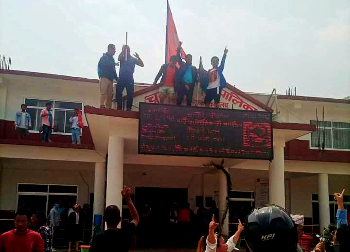 आईतवार गाउँ पालिकाको कार्यलयमा कोशी प्रदेश खारेजीको माग गर्दै आन्दोलन गरिरहेको समितिले कालो झन्डा गाड्ने र कोशी प्रदेश लेखिएको कागजातहरु कार्यलयको प्राङ्गणमा जलाएर नष्ट पारेका छन् । उनीहरुले कार्यालयको बोर्डमा कोशी प्रदेश मेटाएका छन् ।