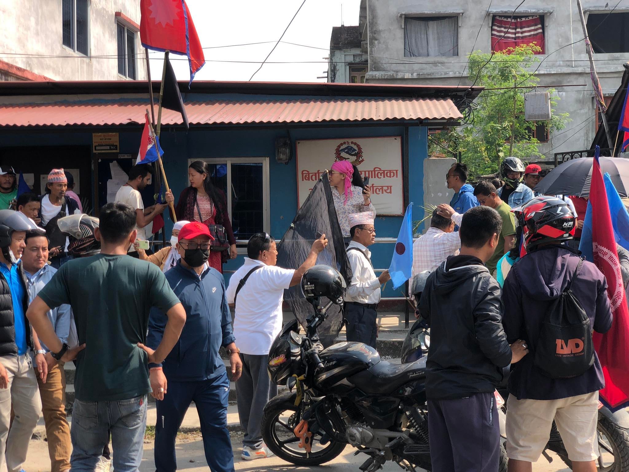 दमक, १४ चैत । कोशी प्रदेश नामाङकन खारेजीको माग राख्दै आन्दोलनरत प्रदेश नं. १ पुनः नामाङकन संयुक्त संघर्ष समितिले स्थानीय तहहरुमा आजबाट तालाबन्दी शुरु गरेका छन् । प्रदेश १ को नाम पहिचानसहितको पुनः गरिनुपर्ने मुख्य मागसहित आन्दोलनमा उत्रिएका पहिचानवादी आन्दोलनकारीहरुले मंगलवार विभिन्न स्थानीय तह बन्द गराएका हुन् ।