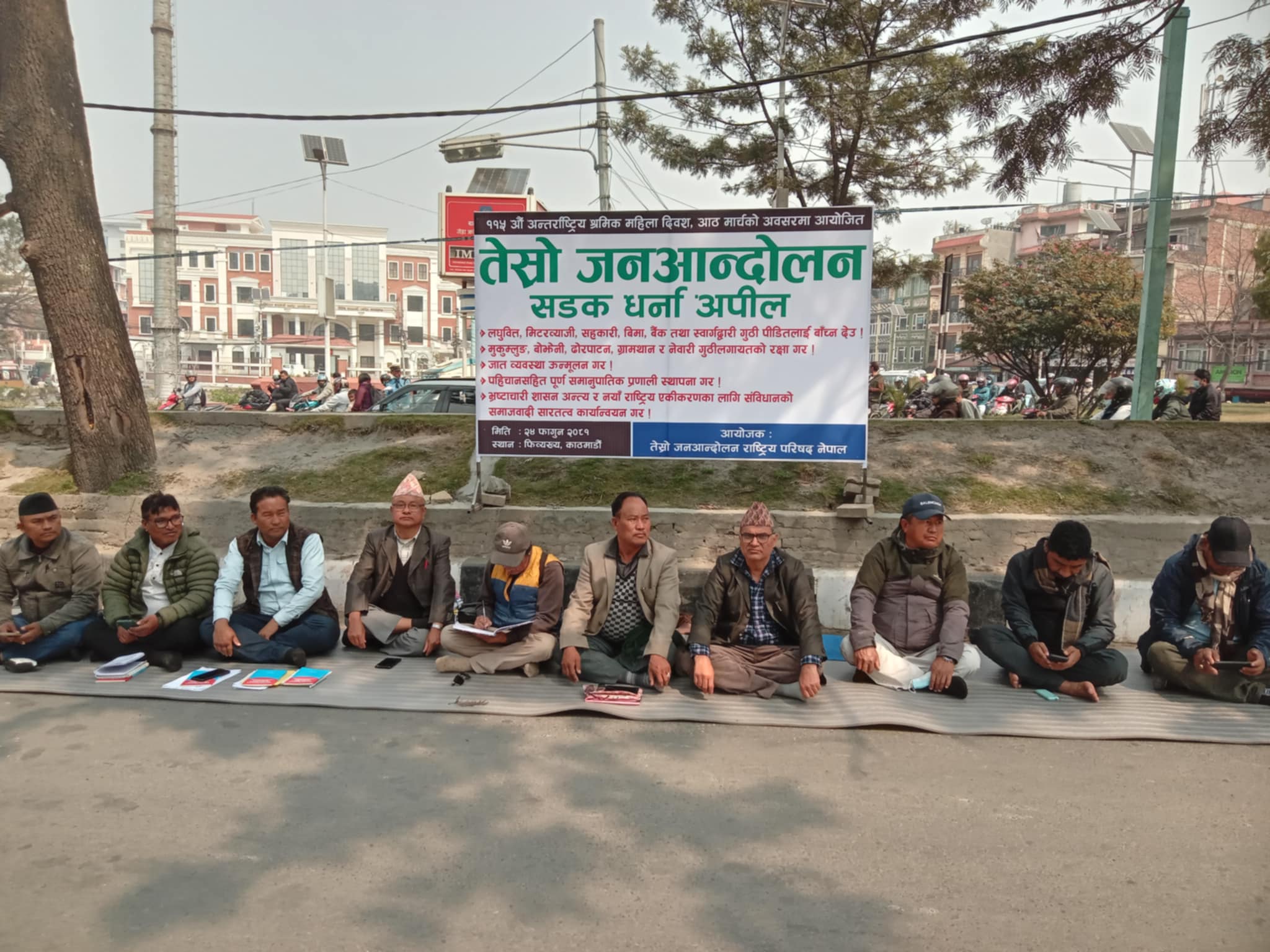 मार्च आठको अवसर पारेर तेस्रो जनआन्दोलन राष्ट्रिय परिषद नेपालको आयोजनामा एक महिने तेस्रो जनआन्दोलन सडक धर्ना अपिल कार्यक्रम शुरु भएको हो ।