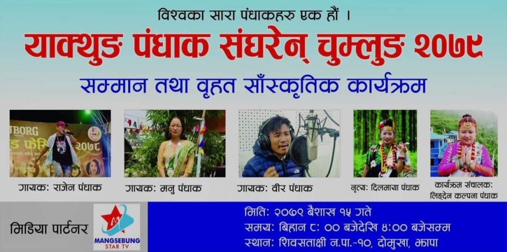 कार्यक्रममा याक्थुङ पंधाक संघ केन्द्रीय महासचिव नारायण पंधाक, भारत सिलीगुरी क्याप्टेन कृष्ण बहादुर पंधाक, पंधाक चेली पदमदेवी पंधाक लगायतले शुभकामना मन्तव्य राखेका थिए ।