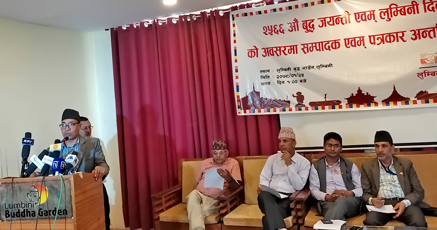 बुद्ध जयन्तीकै अवसर पारेर लुम्बिनीमा निर्माण सम्पन्न भएको ५ हजार क्षमताको अन्तर्राष्ट्रिय बौद्ध सम्मेलन तथा ध्यान केन्द्रको प्रधानमन्त्री शेरबहादुर देउवाले उद्घाटन गर्ने कार्यक्रम रहेको शाक्यले बताए ।