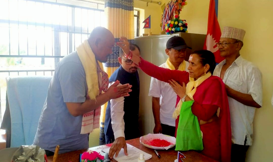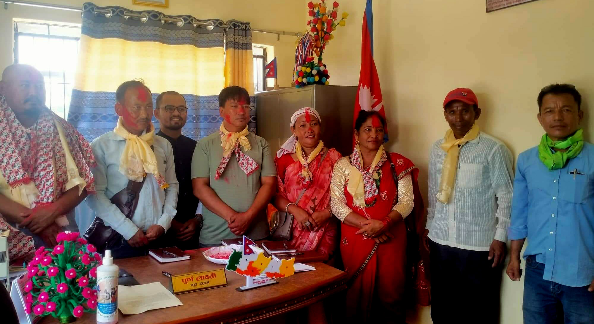 आज पालिकामा अध्यक्ष राजेन्द्र केरुङ्ले उनीहरुलाई सफत गराएका हुन् । सफलग्रहण पश्चात वडाकार्यपालिकाको कार्यालयमा अध्यक्ष लावतीले पदभार ग्रहण गरेका छन् । वार्डका सबै दलका नेताहरु, विभिन्न दलहरुबाट वडाध्यक्षका प्रत्यासी लगायत मञ्चका नेताहरुको समेत पदभारकार्यक्रममा उपस्थिति रहेको थियो । सो क्रममा वडाका कर्मचारीहरुले समेत नव निर्वाचित जनप्रतिनिधिहरुलाई बधाई तथा शुभकामना व्यक्त गरेका छन् ।