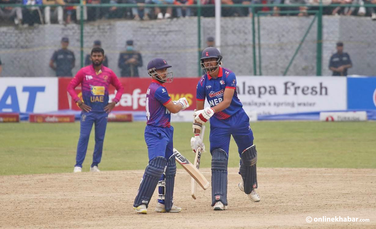 यूईएले लिएको ११८ रनको लक्ष्य नेपालले ३०.३ ओभरमा मात्र ३ विकेट गुमाएर भेट्टायो । नेपालका लागि गुल्शन झाले अविजित ६७ रन बनाए भने भीम सार्की ३६ रनमा नटआउट रहे ।