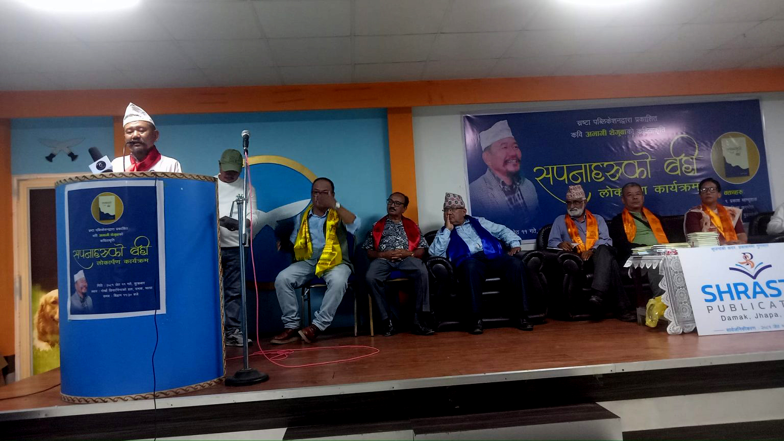 झापाको दमक स्थित गोर्खा किचनको सभाहलमा स्रष्टा पब्लिकेसनद्वारा प्रकाशित साहित्यकार थेगुवाको कविता सङग्रह ‘सपनाहरुको बही’को लोकार्पण गरिएको हो ।