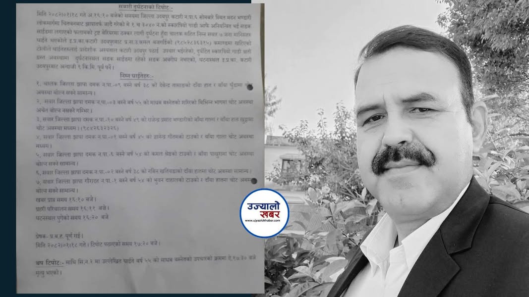 बिहिबार अपरान्ह करिब ४.१० बजे उदयुपुरको कटारी नगरपालिका वडा नं. ६ सोमबारे स्थित मदन भण्डारी लोकमार्गमा भएको दुर्घटनामा परी नगरपालिकाका कानुन अधिकृत माधव बस्नेतको मृत्यु भएको छ ।