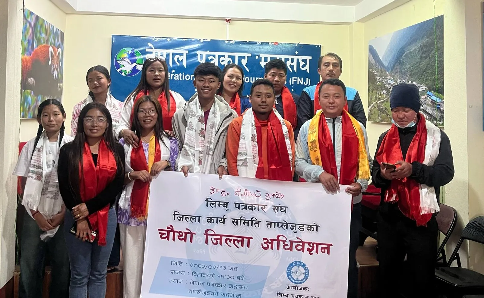 दमक, १३ जेठ । लिम्बु पत्रकार संघ ताप्लेजुङको चाैंथाे जिल्ला अधिवेशन सम्पन्न भएकाे छ । ताप्लेजुङमा मंगलबार सम्पन्न अधिवेशनले कृष्ण फुरुम्बो (लिम्बू)काे अध्यक्षतामा ९ सदस्यीय कार्यसमिति सर्वसम्मत चयन गरेको हो ।
