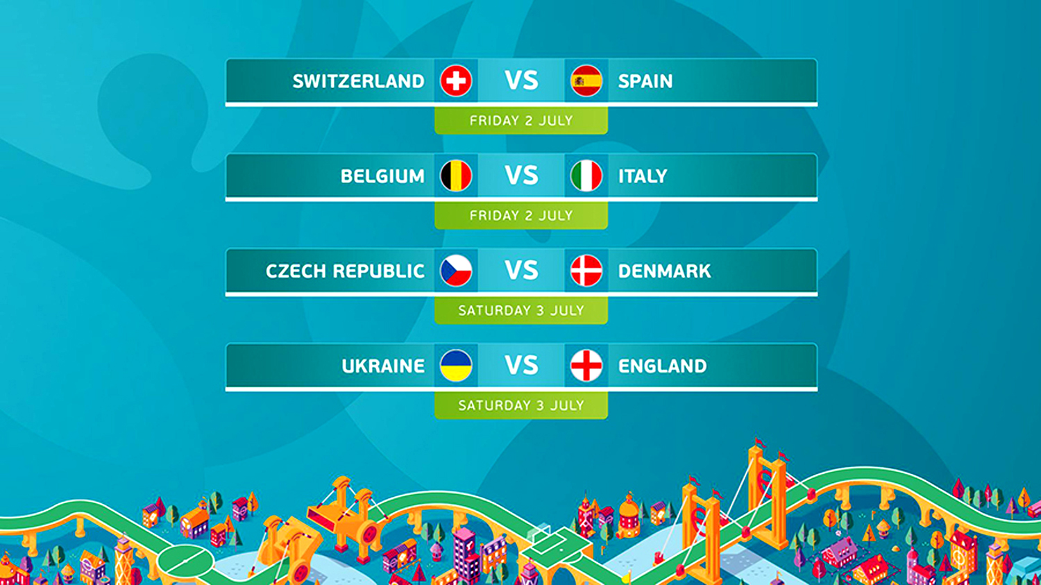 यो सँगै क्वाटरफाइनलको समीकरण पनि तय भएको छ । अब क्वाटरफाइनलमा स्विट्जरल्याण्डले स्पेनसँग, बेल्जियमले इटलीसँग खेल्नेछ भने चेक रिपब्लिकले डेनमार्कसँग र इंग्ल्याण्डले क्वाटरफाइनलमा युक्रेनसँगै भिड्नेछ ।