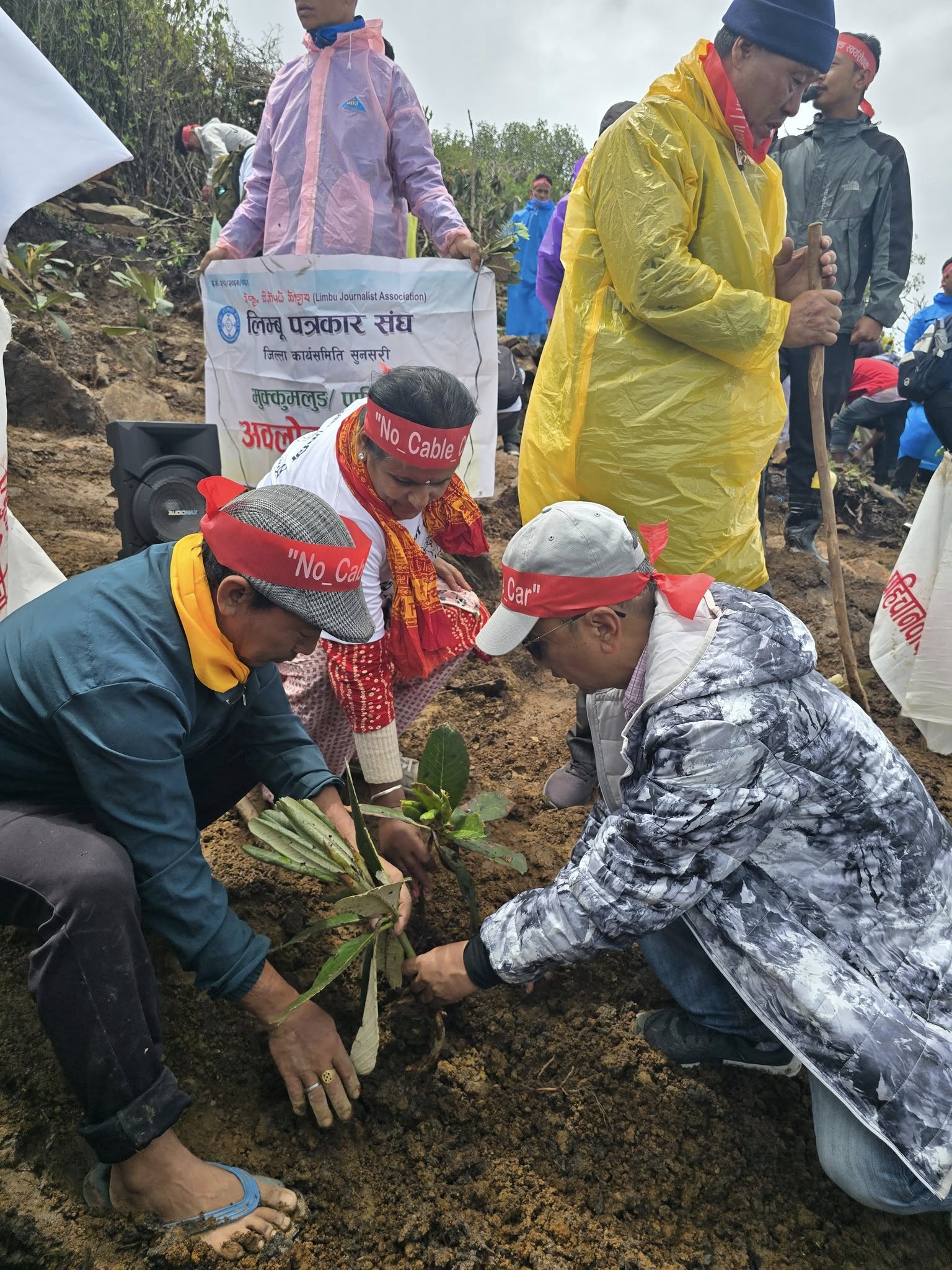 वृक्षाराेपण कार्यक्रममा एक्यवद्धता जनाउन चुरे तथा वनजंगल संरक्षण अभियान, नेपालबाट समेत उपस्थिति रहेकाे थियाे ।