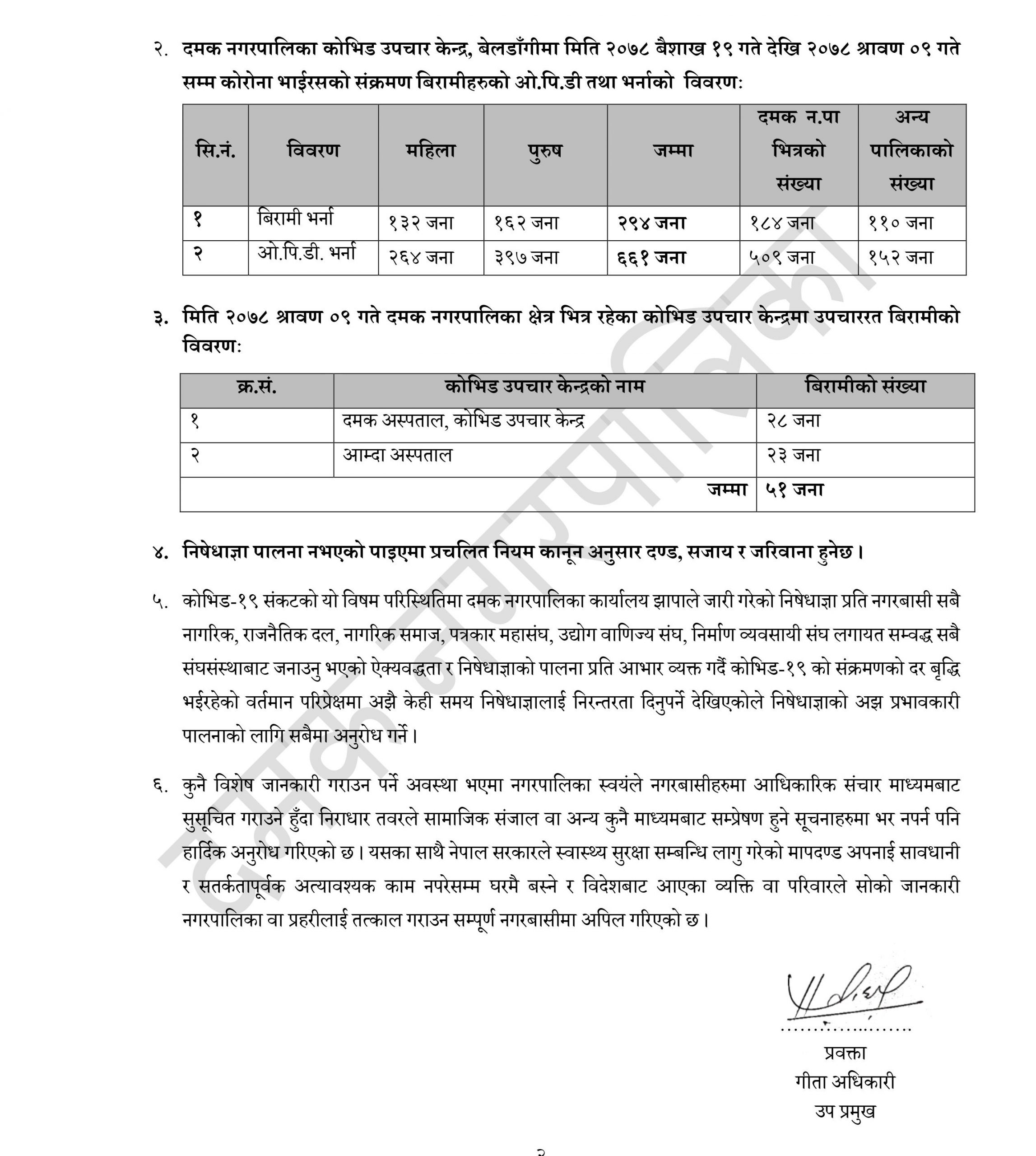 दमक नगरपालिकाले जारी गरेकाे बिज्ञप्तिः