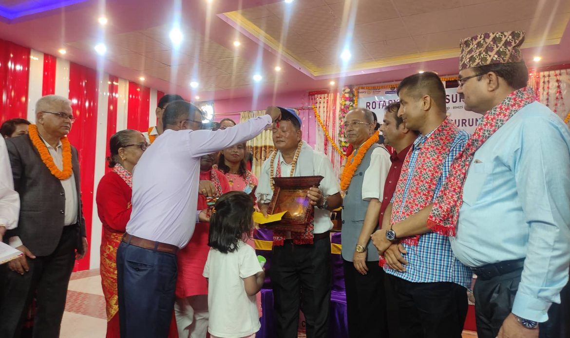 कार्यक्रमका प्रमुख अतिथी रोटरीका निवर्तमान डिस्ट्रिक गभर्नर सन्तोष रिजाल, एजी निकिता गिरी, रोटरी क्लव अफ सुरुङ्गाका अध्यक्ष खेम प्रसाई, निवर्तमान अध्यक्ष सुशीलकुमार श्रेष्ठ, पुर्व अध्यक्ष टिकाप्रसाद जमरकट्टेल लगायतले सम्मान गरेका हुन् । दाता परिवारका तर्फबाट टिकाराम एवं हेमकला निरौला, रामप्रसाद एवं शान्ता निरौला, सार्थक र समृद्धि निरौलासहित परिवारका सदस्य तारानिधि दवाडीले पत्रकार राईलाई सम्मान गरेका हुन् ।