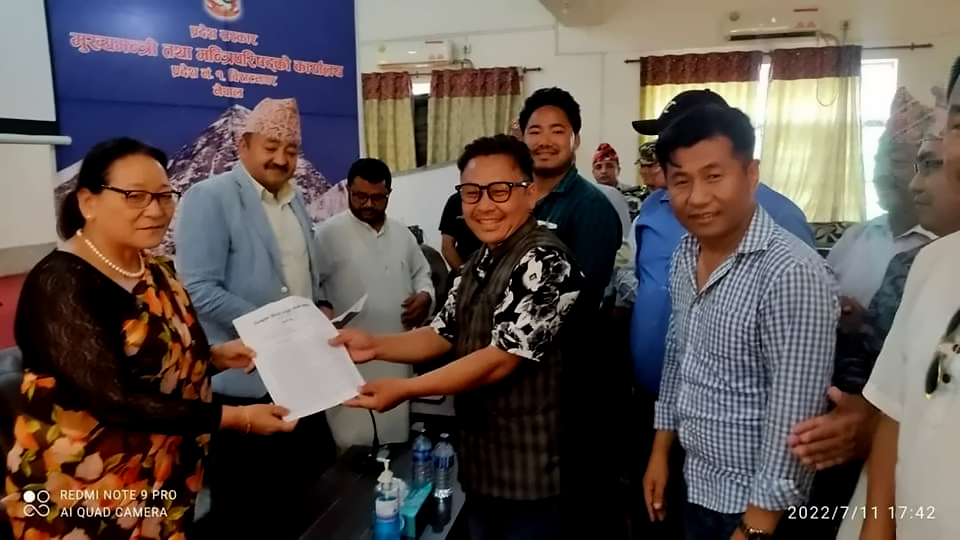 किरात याक्थुङ चुम्लुङ प्रदेश समितिको संयोजनमा बनेको संघर्ष समितिले ७ प्रदेशमध्ये ६ प्रदेशले नाम र राजधानी टुंगो लगाएसँगै दबाबमा रहेको प्रदेश १ सरकारलाई पहिचानको आधारमा नामकरण गर्न भन्दै सोमबार ज्ञापनपत्र बुझाएको हो।