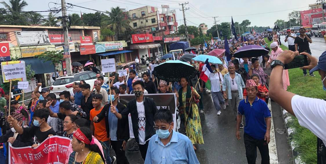 १ नम्बर प्रदेशको नाम ‘लिम्बुवान, किरात’ राख्न दबाब दिन जनप्रदर्शनमा सहभागी हुन पहिचानवादी दल तथा संघसंस्थामा आवद्ध संगठनका हजारौं कार्यकर्ता विराटनगर पुगेका थिए ।