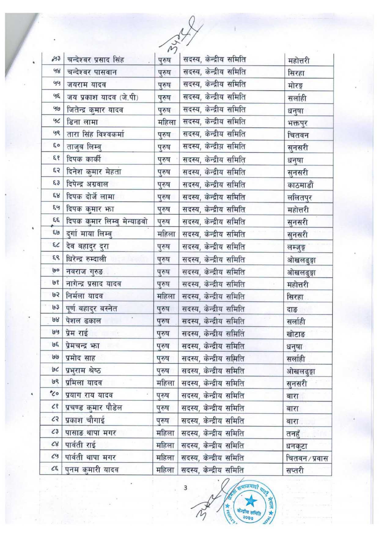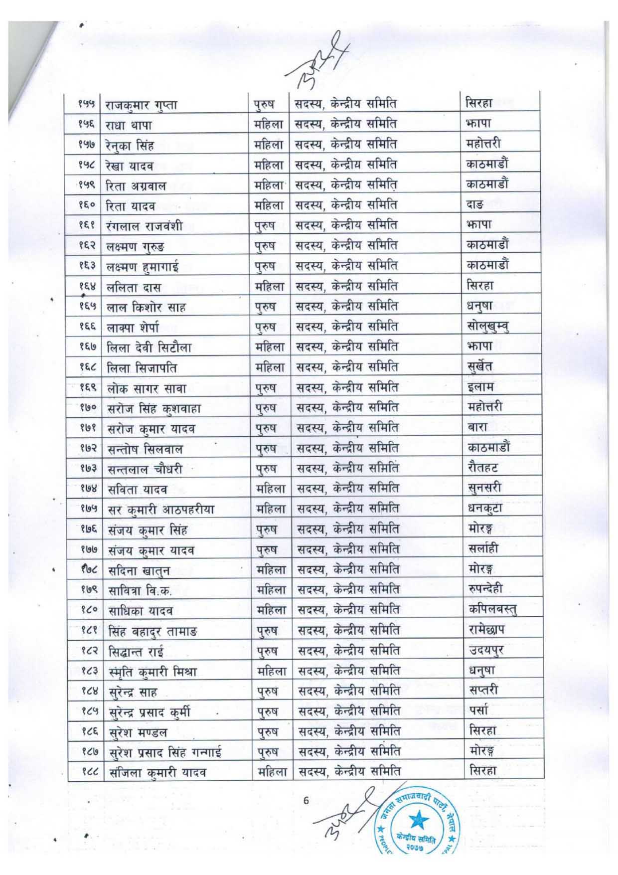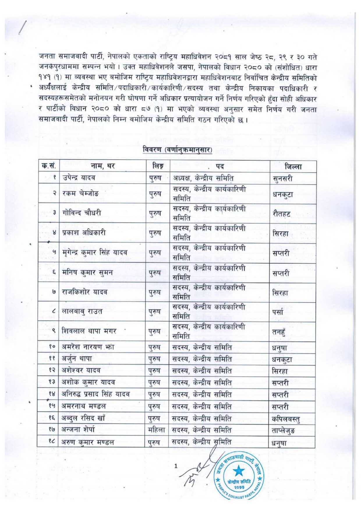 अध्यक्ष यादवले पार्टीको महाधिवेशन सकिएको करिब एक महिनापछि पदाधिकारी र केन्द्रीय सदस्यहरु छानेका हुन् ।