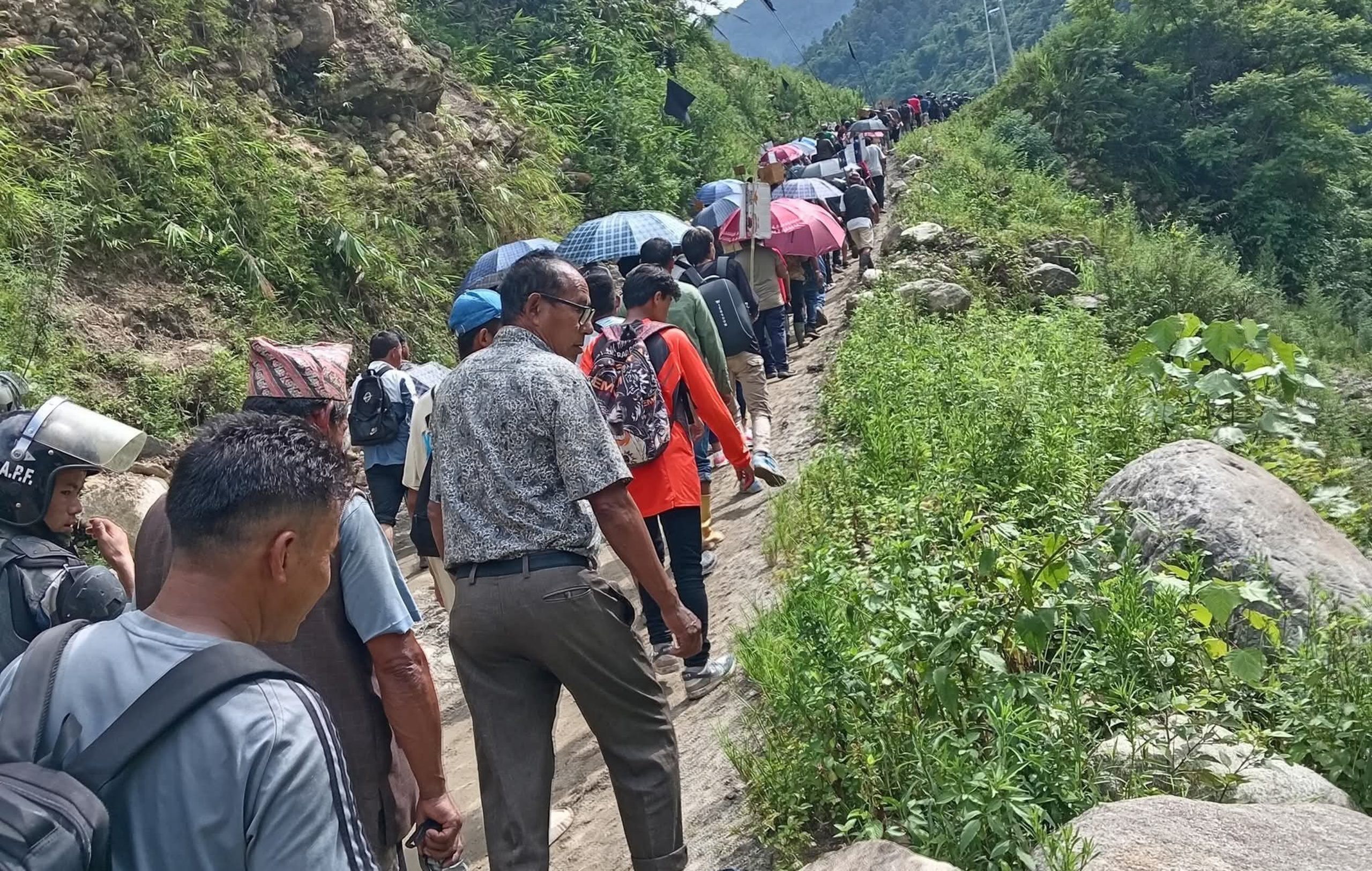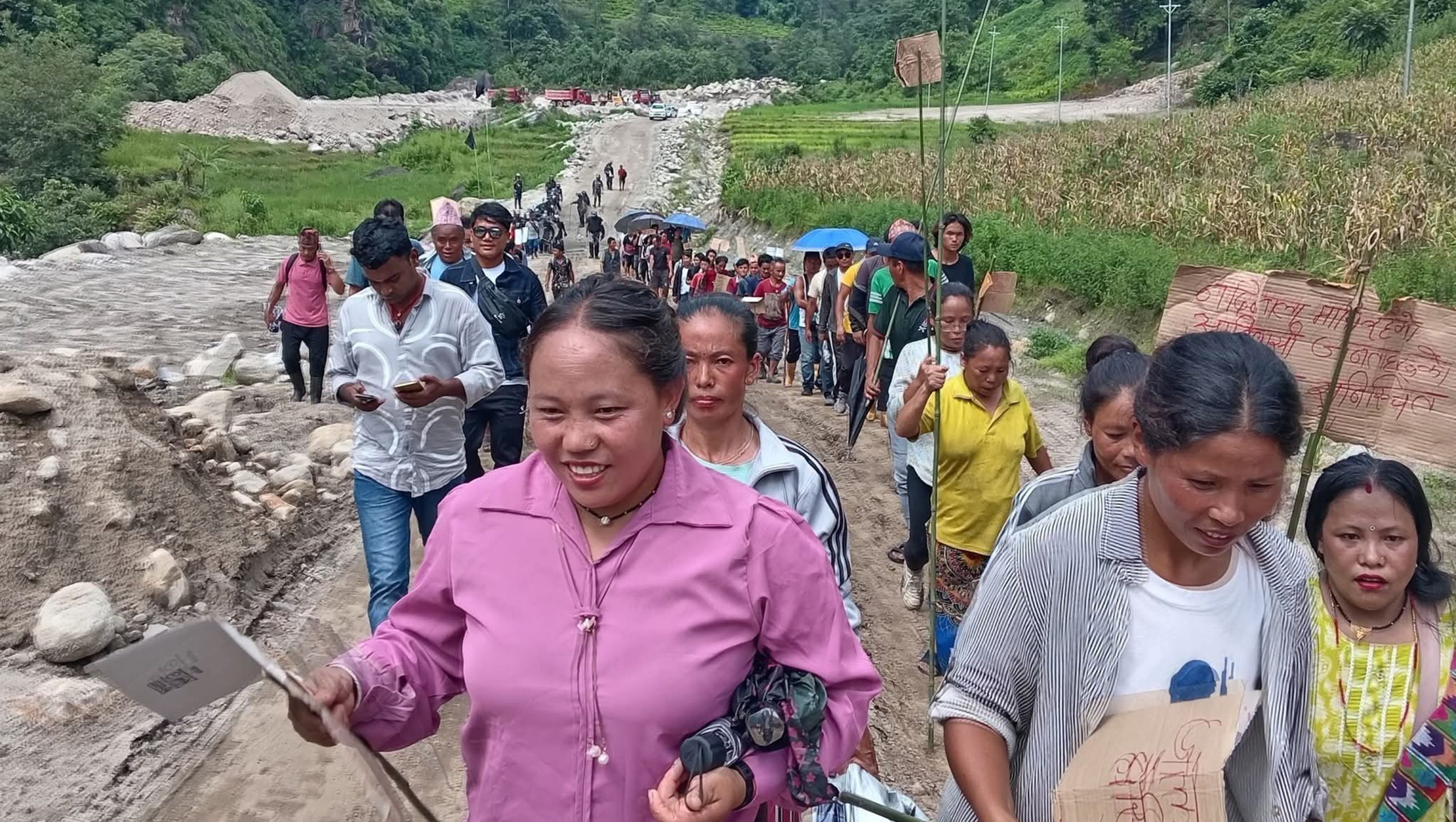 शुक्रवार प्रभावित क्षेत्रका बासिन्दाले उक्त आयोजनाको काम रोक्नुपर्ने माग गर्दैे प्रदर्शन गरेका हुन् ।
