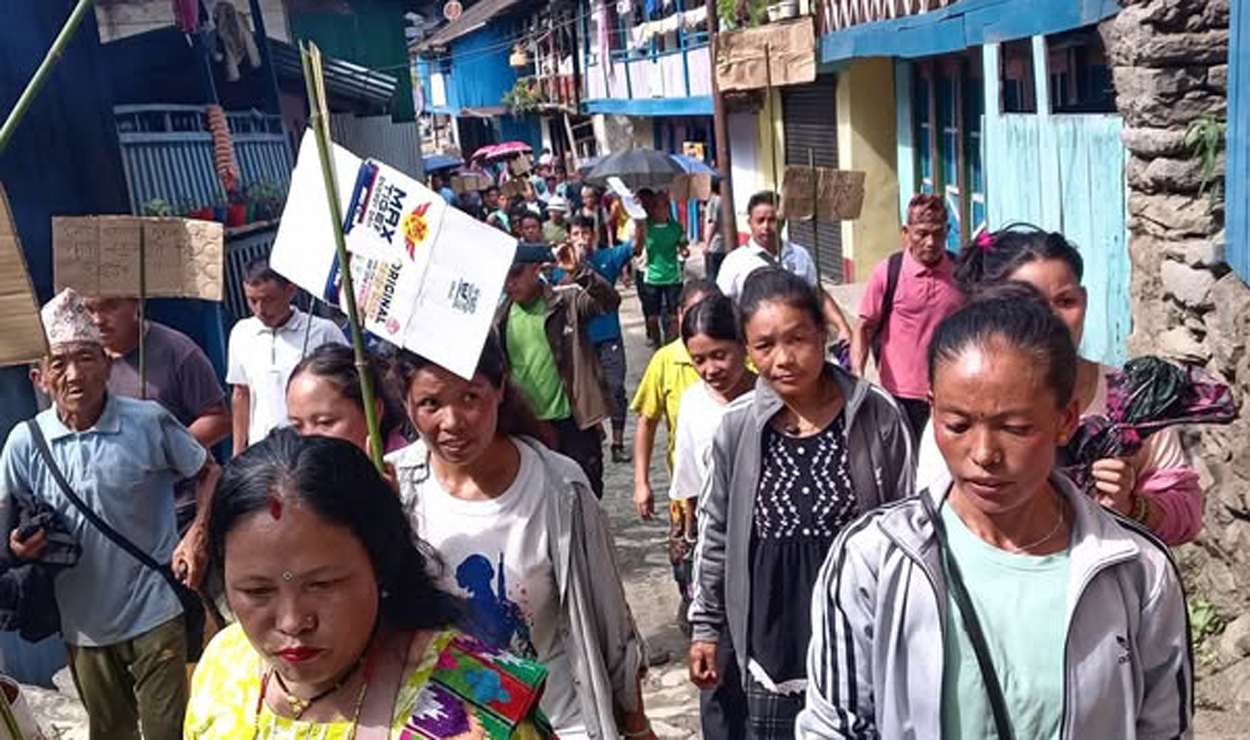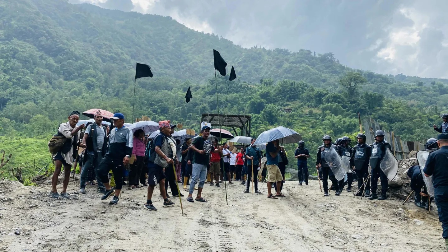 अप्पर तमोर जलविद्युत निर्माण स्थलमा स्थानीयको प्रदर्शन