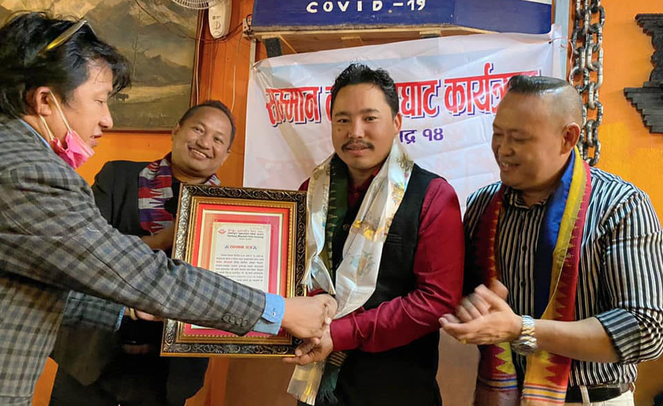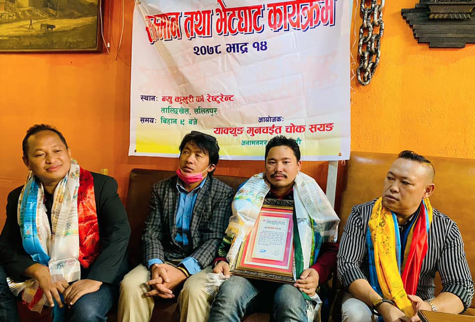 ललितपुर, १४ भदौ । चलचित्र निर्देशक सागर केरूङलाई सम्मान गरिएको छ । ललितपुरस्थित कुखुरी काँ रेष्टुरेन्टमा याक्थुङ मुन्चइत चोक सयङले केरुङलाई सम्मान गरेको हो ।