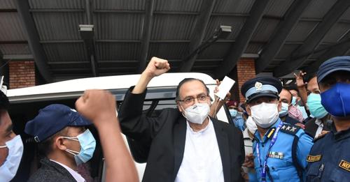 नेता खनाललाई स्वागत गर्न अध्यक्ष एवम् पूर्व प्रधानमन्त्री माधव कुमार नेपाल विमानस्थल पुगेका थिए ।