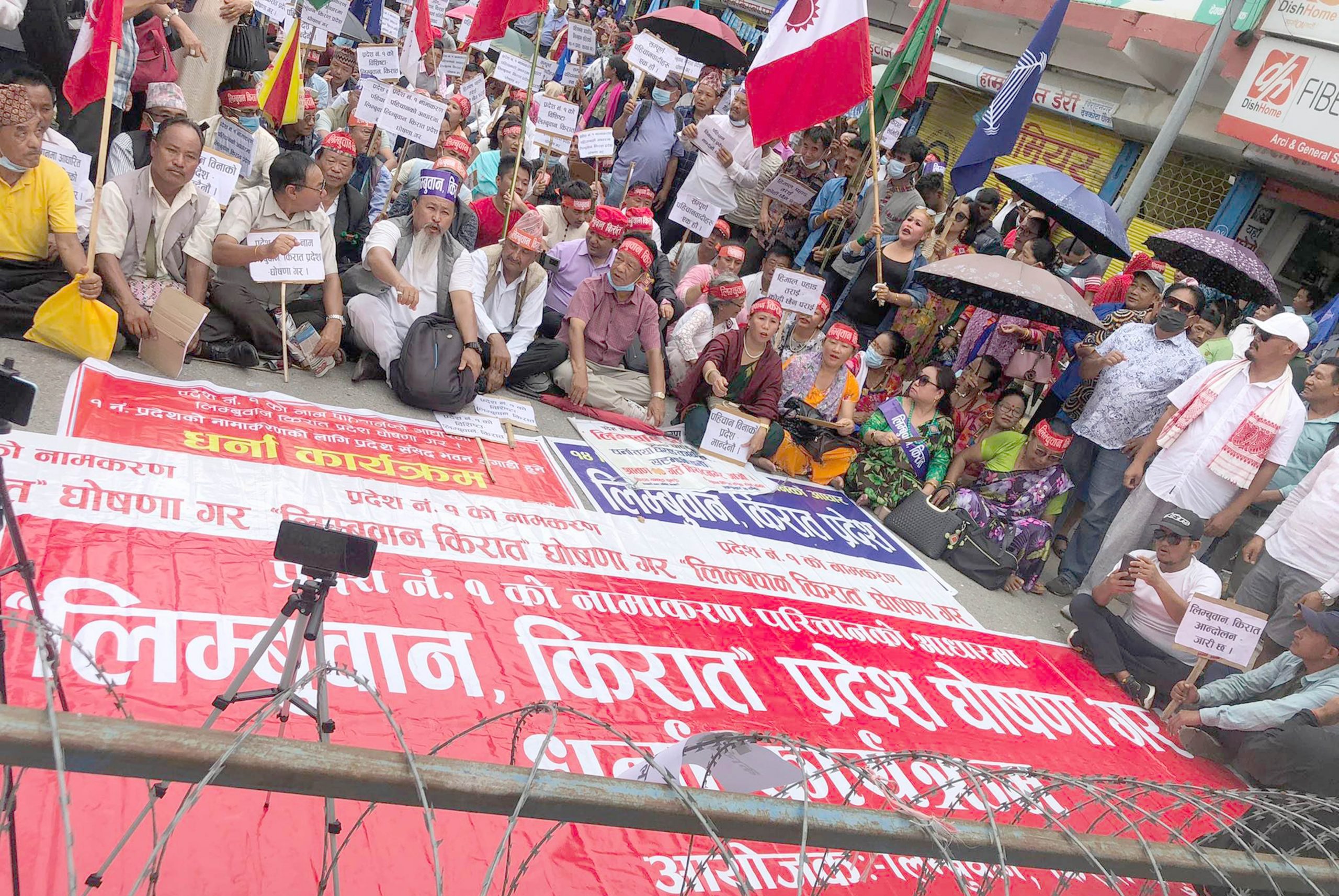 विराटनगर, १८ साउन । प्रदेश १ को नाम पहिचानको आधारमा लिम्बुवान, किरात प्रदेश राख्न माग गर्दै प्रदेश संसद सचिवालय भवन अगाडि धर्ना दिएका छन् ।