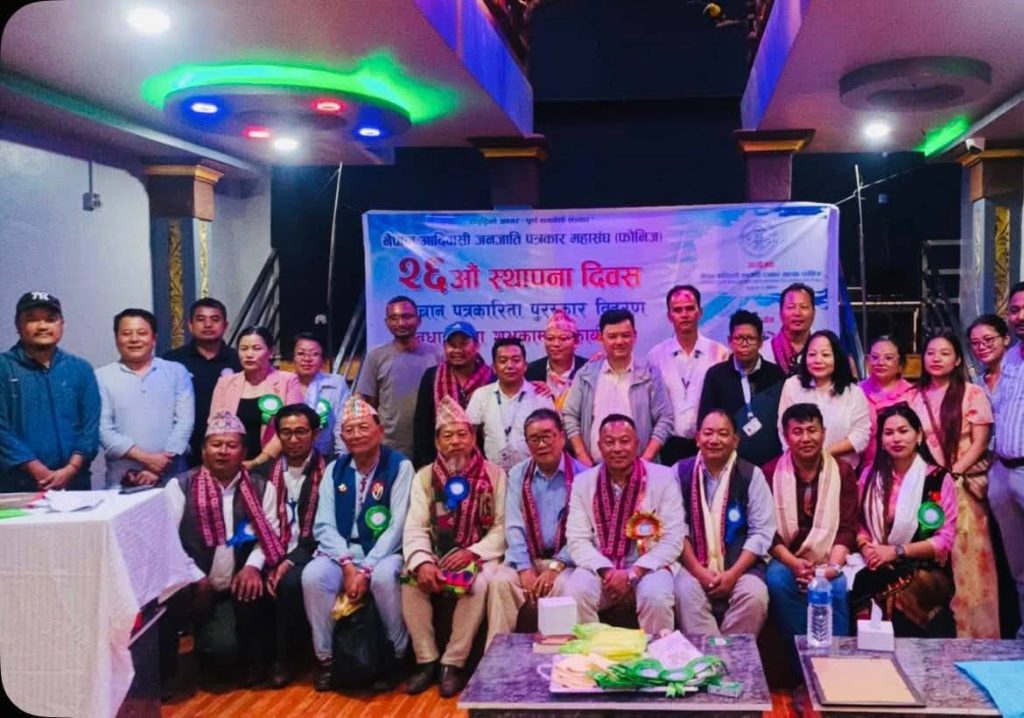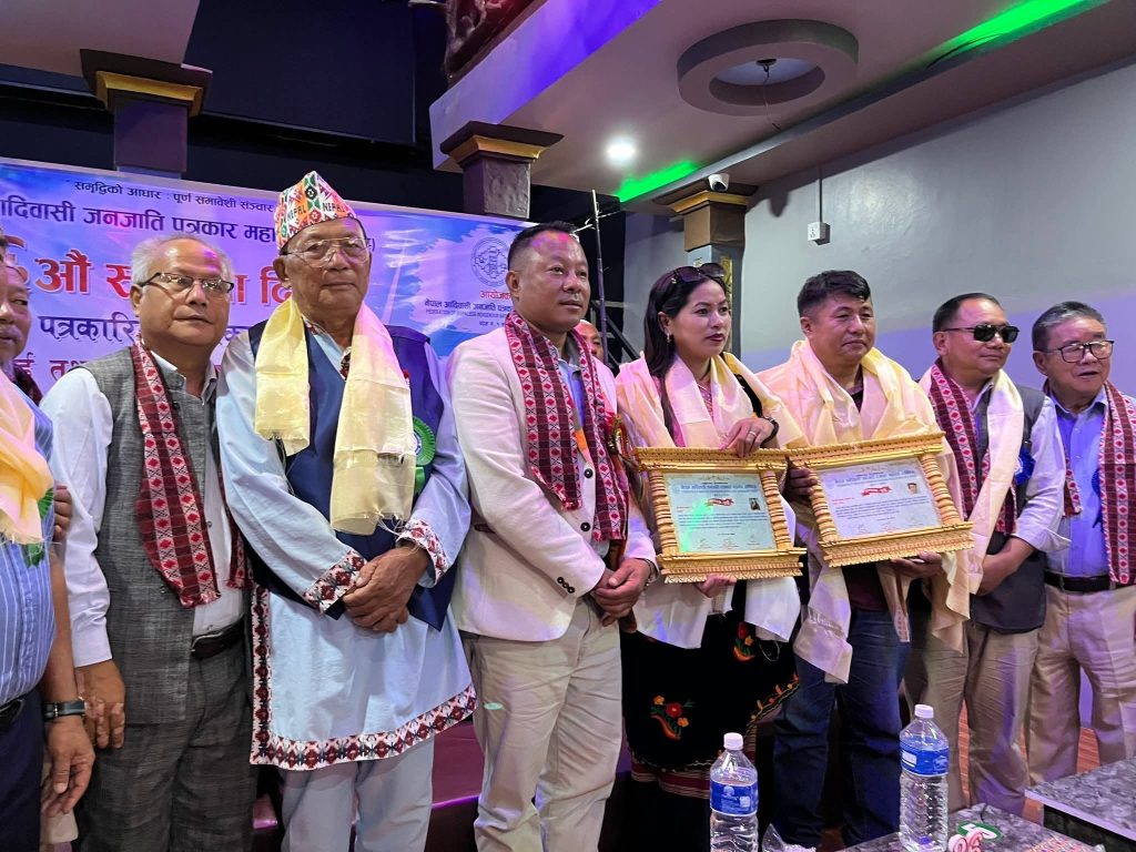 मंगलबार धरानमा नेपाल आदिवासी जनजाति पत्रकार महासंघ (फोनिज)प्रदेश समितिले सस्थाको २६औं स्थापना दिवसको अवसरमा लावती सहित २ जना पत्रकारलाई ‘पहिचान पत्रकारिता पुरस्कार’ प्रदान गरिएको हाे ।