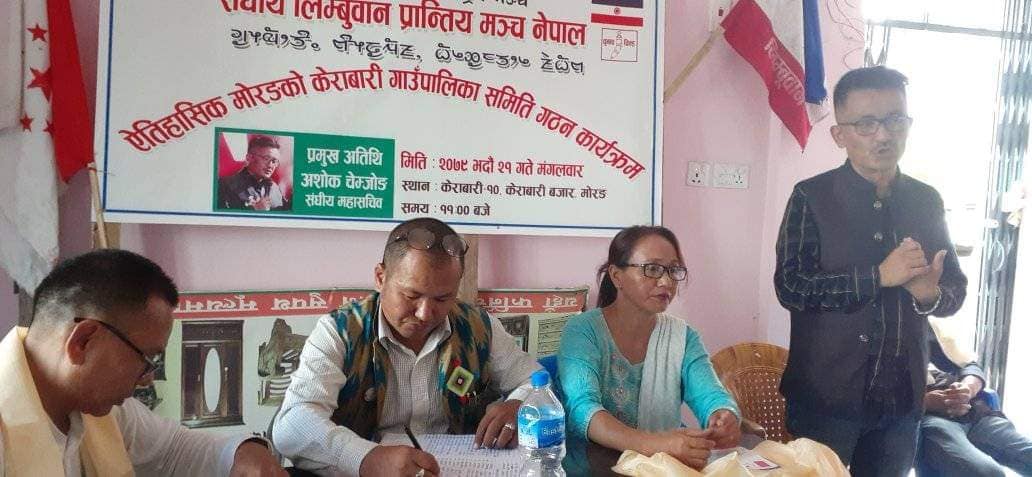 मोरङ्, सा.लि. । संघीय लोकतान्त्रिक राष्टिय मञ्च सम्बद्ध संघीय लिम्बूवान प्रान्तीय मञ्च नेपाल केराबारी गाउँपालिकामा मञ्चको समिति गठन भएको छ । केराबारी १० स्थित जुेनली चोकमा मञ्चका संघीय महासचिव अशोक चेम्जोङको प्रमुख आतिथ्यतामा नयाँ समिति चयन गरिएको हो ।