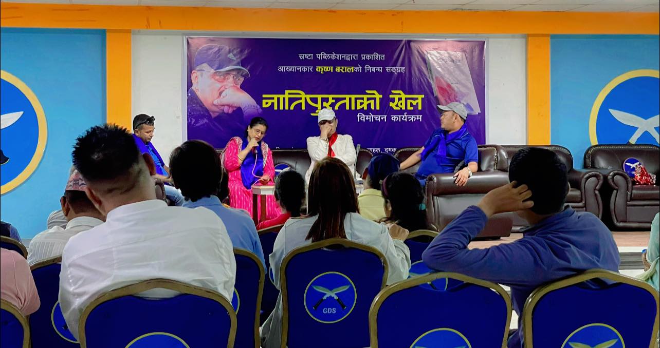 दमक, १९ असोज/ आख्यानकार कृष्ण बरालको निबन्ध सङ्ग्रह “नातिपुस्ताको खेल” को आज दमकमा लोकार्पण गरिएको छ । दमकस्थित गोर्खा डिपार्टमेन्टको सभा हलमा आयोजित भव्य कार्यक्रमबीच आख्यानकार बरालको “नातिपुस्ताको खेल” लोकार्पण गरिएको हो ।