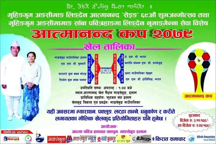 प्रतियोगिताको फाइनल खेल मंसिर १७ गते हुनेछ । गतसालको आत्मनन्द कप आयोजक माङसेबुङ गाउँपालिकाको टिमले जितेको थियो ।