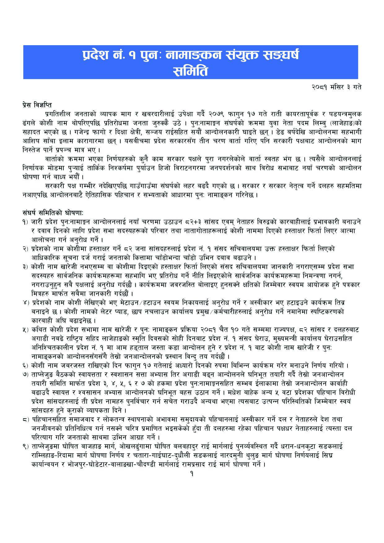प्रेस विज्ञप्ति र घोषणा पत्र तल हेर्नुहोस्