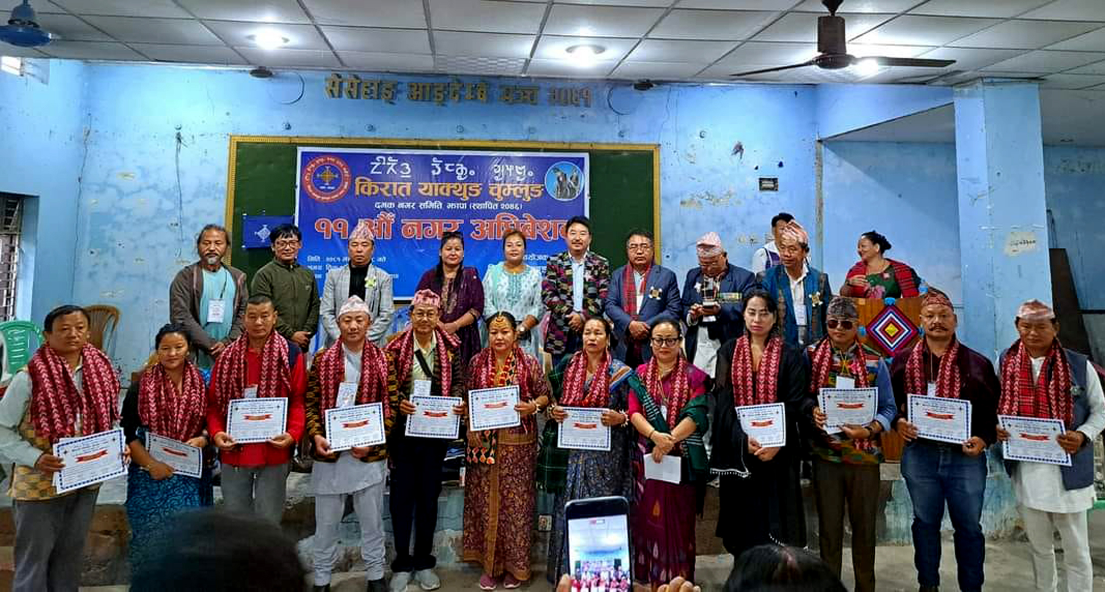 दमक, ९ मंसिर । किरात याक्थुङ चुम्लुङ दमक नगर शाखाको एघारौं नगर अधिवेशन शनिवार सम्पन्न भएको छ । शुक्रबार दमक ७स्थित किरात भनवको सभाहलमा सम्पन्न अधिवेशनले देवेन्द्र चेम्जोङ्लाई पुनः अध्यक्षमा निर्विरोध निर्वाचित गर्दै अधिवेशन सम्पन्न भएको हो ।