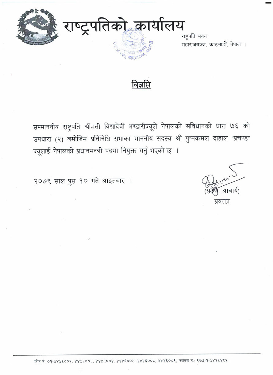 हेर्नुहोस् राष्ट्रपति कार्यालयको विज्ञिप्ति ः