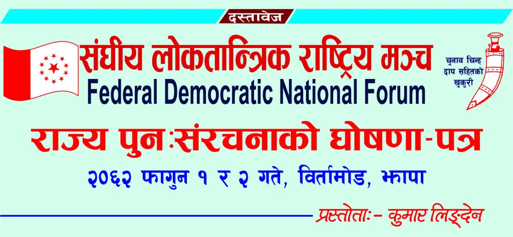 संघीय लोकतान्त्रिक राष्ट्रिय मञ्च राज्य पुनःसंरचनाको घोषणापत्र– २०६२
