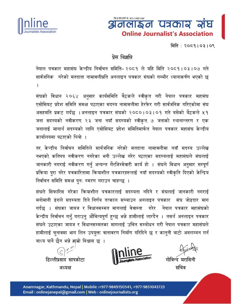 अनलाइन पत्रकार संघको ध्यानाकर्षण
