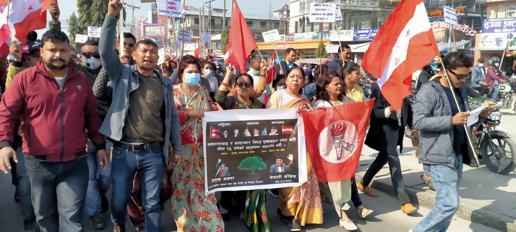 दमक। प्रमुख प्रतिपक्षी दल नेपाली कांग्रेसले नेकपाको सर्वसत्तावाद विरुद्ध आयोजना गरेको देशव्यापी विरोध प्रदर्शनका क्रममा आज देशभरका १६५ वटै निर्वाचन क्षेत्रहरुमा प्रदर्शनसहित विरोध सभा गरेको छ । केपी ओली सरकारको असंवैधानिक, आलेकतान्त्रिक र प्रतिगमनकारी कदमको...