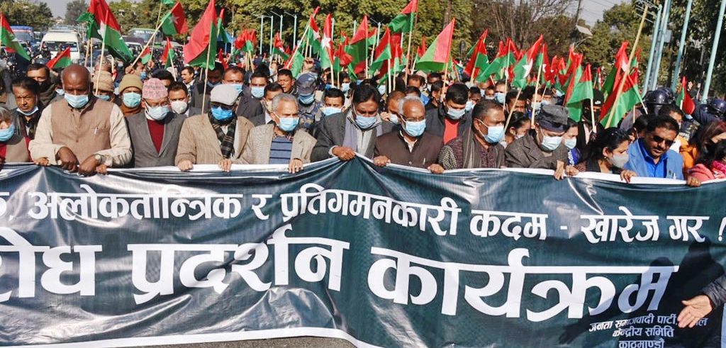काठमाडौँ। प्रधानमन्त्री केपी शर्मा ओलीकोे विरुद्धमा जनता समाजवादी पार्टी (जसपा) नेपालले विरोध प्रदर्शन गरेको छ । प्रधानमन्त्रीले गर्नुभएको प्रतिनिधि सभा विघटन असंवैधानिक, अलोकतान्त्रिक, प्रतिगमनकारी र जनताको भावना विपरित भएको भन्दै आज आईतबार जसपाले काठमाडौँमा विरोध...